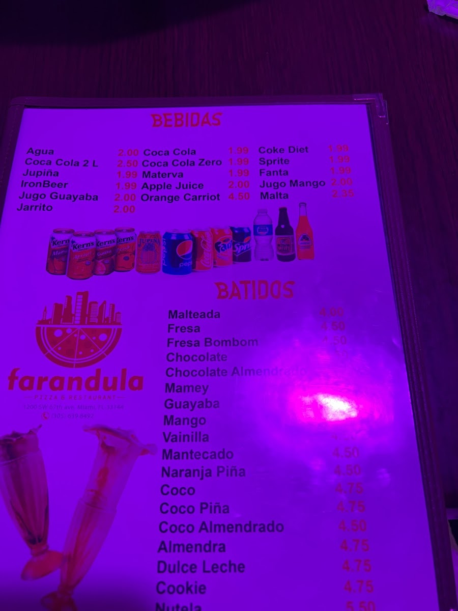 Welcome to Farandula Pizzeria & Restaurant, a hidden gem located at 1200 SW 67th Ave in Miami, FL. Here, the atmosphere is a harmonious blend of style and comfort, creating a perfect dining escape. The enthusiastic staff embodies warmth and hospitality, making every visit feel like coming home.